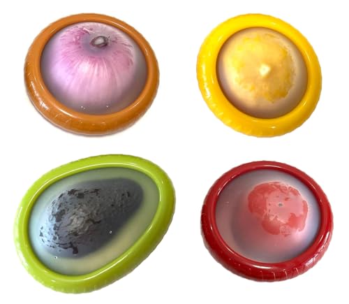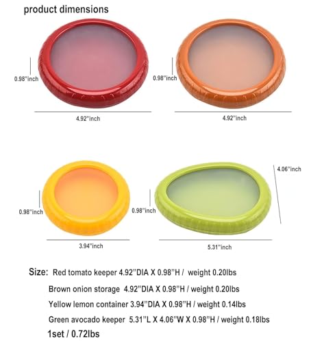 suzmei - 4PC Silicone Fruit and Vegetable Storage Containers Set for Fridge, Onion Storage Container, Avocado keeper,Tomato Saver,and Lemon holder,reusable