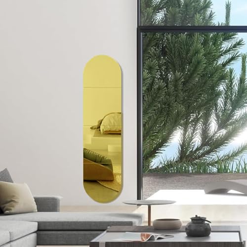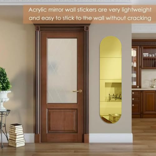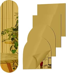 Generic - 4Pcs Arch Self Adhesive Acrylic Mirror 30CM Full Length Acrylic Mirror Set DIY Flexible Mirror Stickers Tiles for Bedroom Living Room Bathroom Decor (Gold)