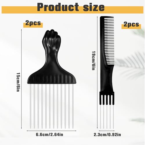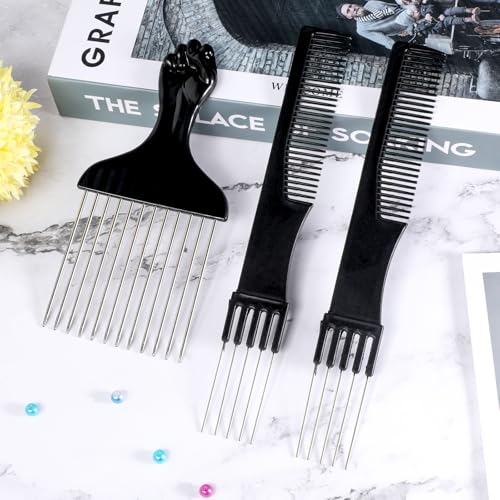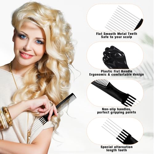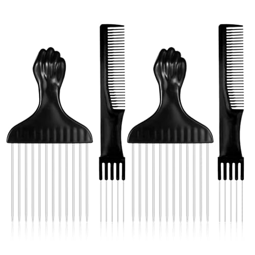 Tucnoeu - 4Pcs Black Combs with Metal Pick,Hair Picks for Women,Stainless Steel Afro Hair Pick Comb Set Salon Teasing Back Combs Perfect for Curly & Afro Hair Care and Styling