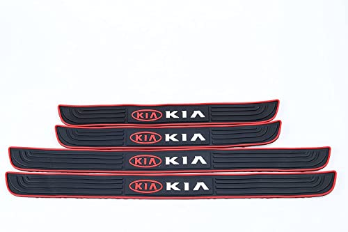 Generic - 4Pcs Car Door Sill Protector,Silicone fiber leather Door Sill Sticker, Reflective Automotive Door Entry Guard, Decoration Door Sill Scuff Plate - black*red - (Kia)