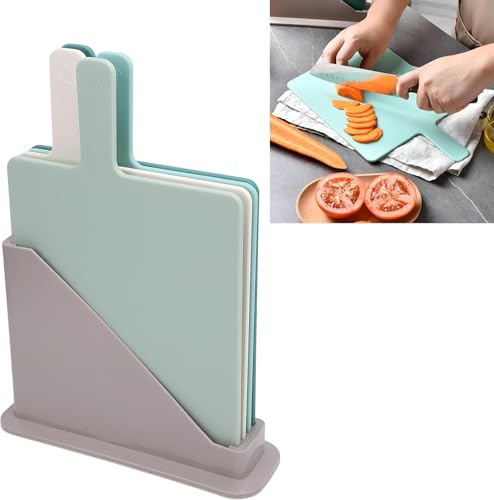 Generic - 4PCS Cutting Board Set with Holder – Color Coded Chopping Boards for Meat, Fish, Bread & Vegetables – Kitchen Organizer Stand