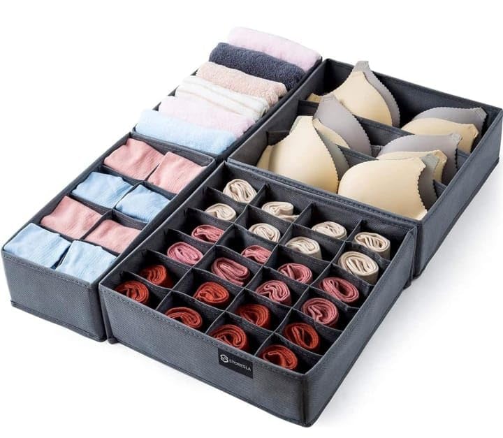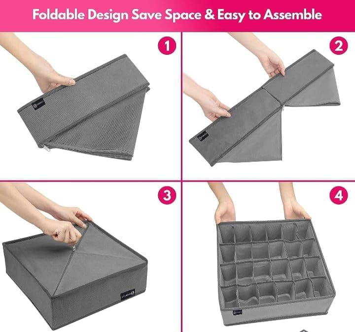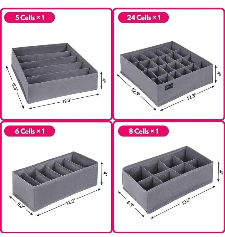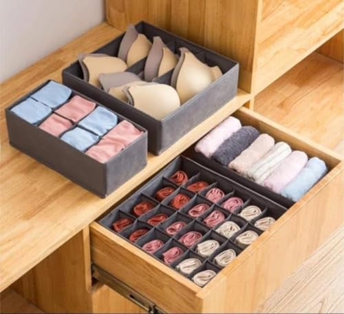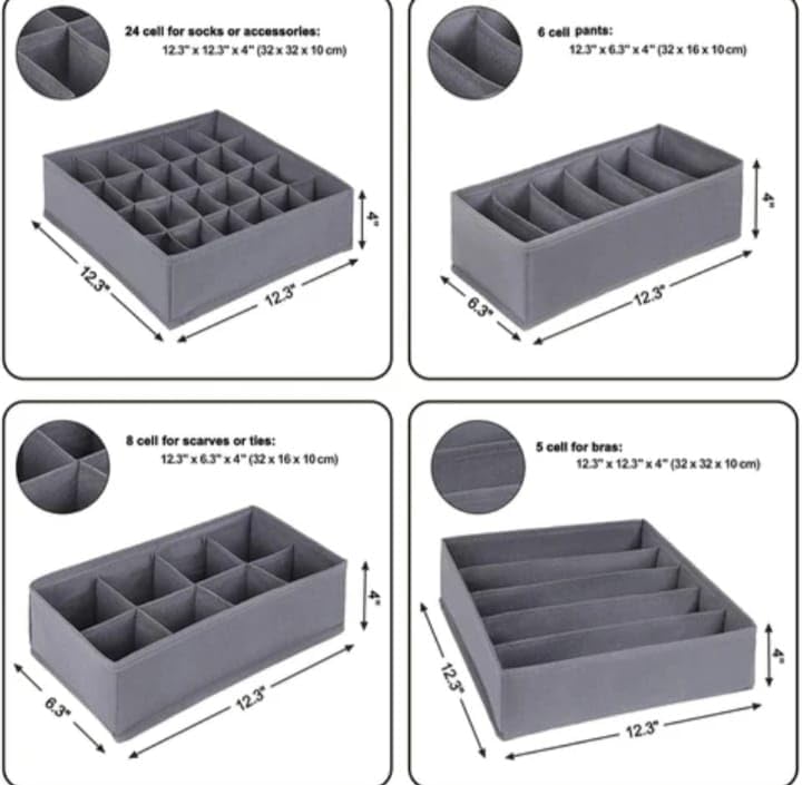 - 【 COLLAPSIBLE DRAWER ORGANISERS 】: Our drawers and wardrobe storage 】: 4-PCS closet organizer boxes provide attractive, lightweight solution for personal storage needs. , 6 cells (for socks, ties), 24 cells (for scarves, accessories); another big ). Storage organizing boxes with meticulous stitching and high-quality fabric to keep items neat always.