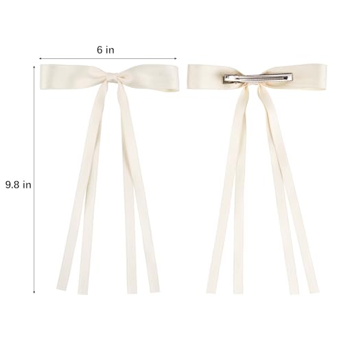 - Hair Bows with Long Tail Set: 4 pieces bow hair clips, 2 black and 2 beige, hair bows with different colors to match any of your outfit, make your personality shine in any occasion and you will get compliments from everyone. These handmade hair bows are perfect for all seasons