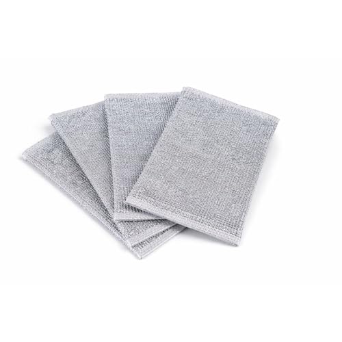 Generic - 4PCS Multipurpose Wire Dishwashing Rags – Heavy Duty Wet & Dry Cleaning Scrub Cloth, Mylar Polypropylene Polyester Blend, 15×9.5 cm – Silver