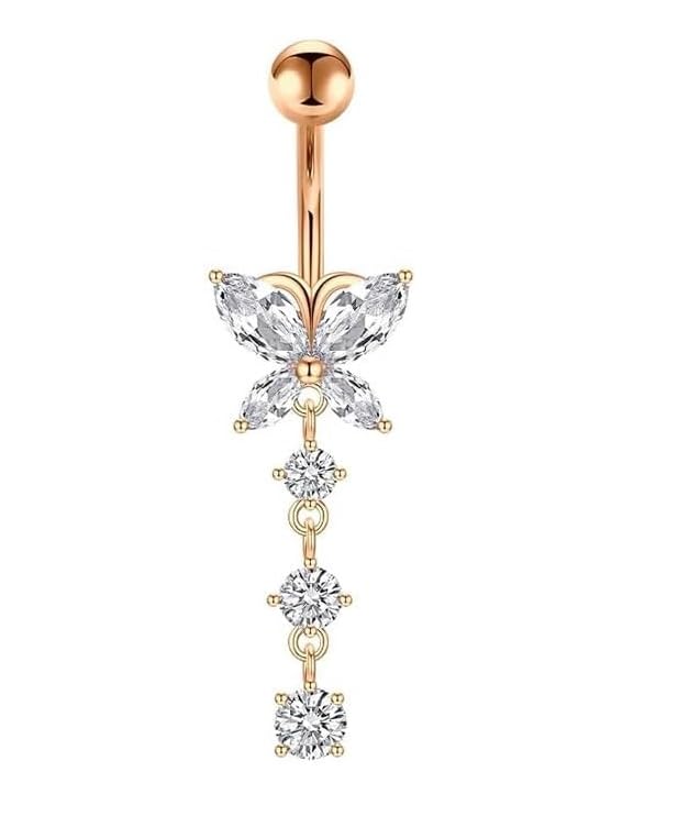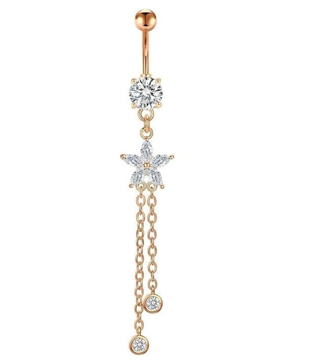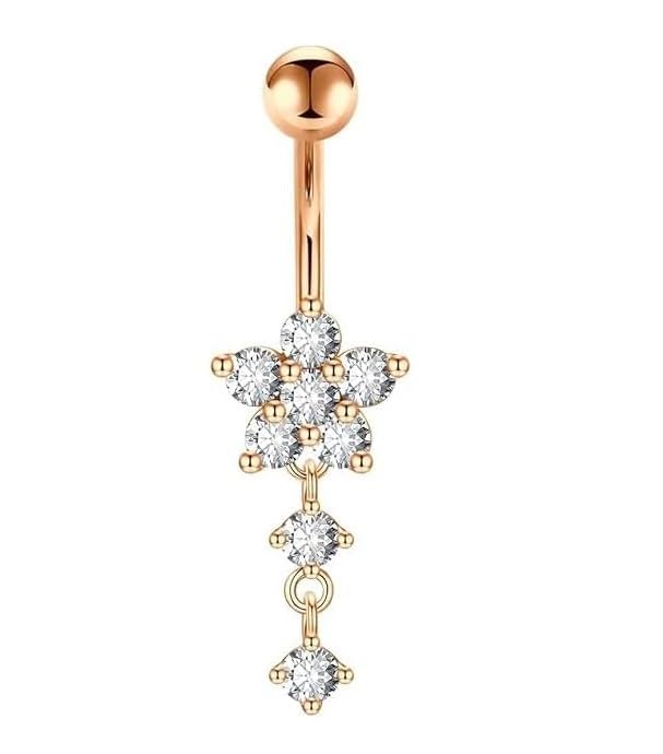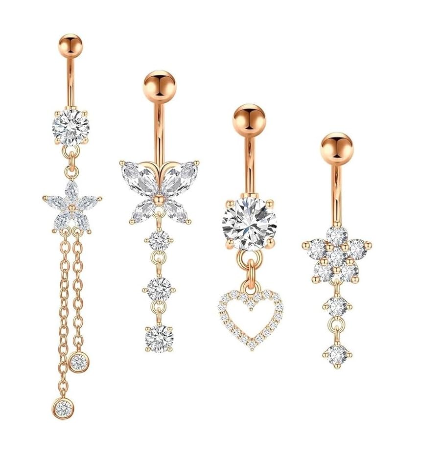 fashion mania - 4PCS Stainless Steel Long Dangle Rhinestone studded Belly Piercing Navel Rings for women