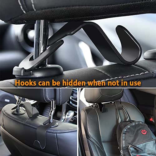 - S-Type Curve Design:Hooks using a one-piece S-shaped fit seat back curve design edge work smooth and rounded, will not scratch the car seat. Further, when not in use, it can adjust the side of the steering headrest to prevent sudden braking collision injuries.