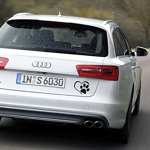 Hmkaufen - 4yourpet Car Sticker Paw Heart Car Wash Resistant Black