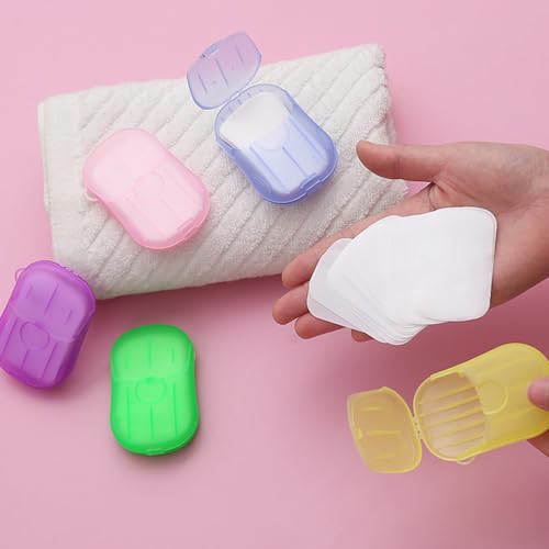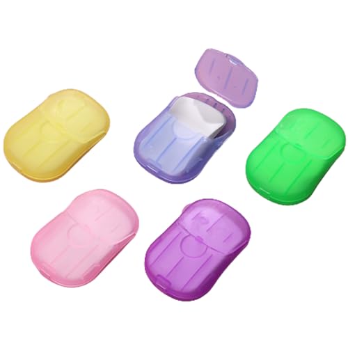 XIHENGWANGBANGJI - 5 Boxes Portable Hand Soap Flakes Disposable Paper Soap Mini Scented Slice Sheets with Storage Box Paper Soap Sheets for Hand Washing Foaming Paper Soap Flakes for Travel Outdoor Hand Washing