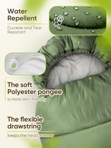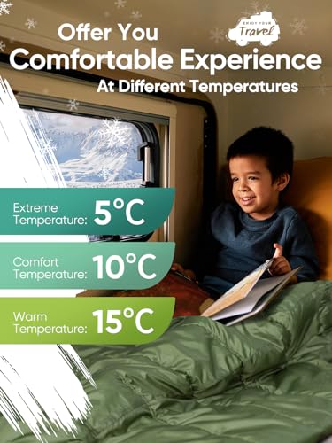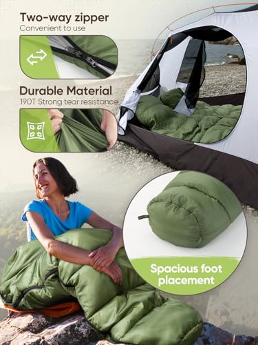 - High-quality outer material: temperature comfort 8-15°C / extreme 5°C. The shape of the camping sleeping bag is very suitable for storing the warmth of the sleeping bag, and high-quality materials can keep you warm even in winter. 210T ripstop polyester make this sleeping bag particularly breathable, robust and durable.