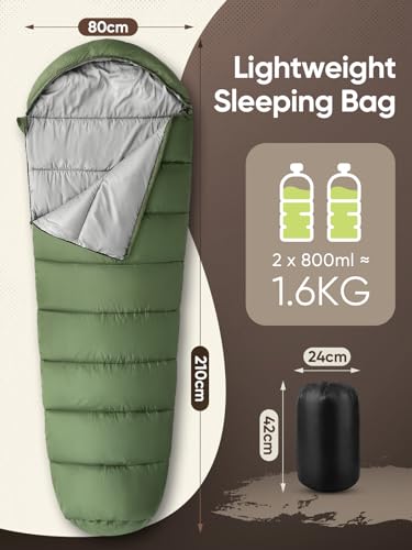 VirtuDrill - 5 °C ~ 25 °C - Ultralight Sleeping Bag for 3-4 Seasons, Mummy, Compact Mummy Sleeping Bag for Adults, Travel, Camping, Hiking