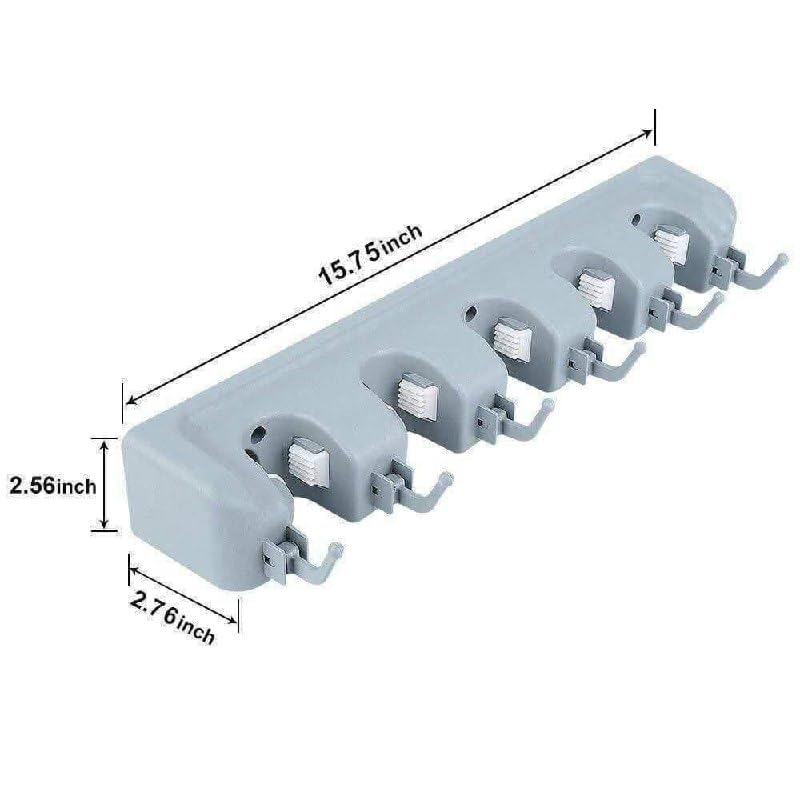 Generic - 5-Compartment Multifunctional Broom Holder – 5 Compartments & Hanging Hook – Practical Organizer for Organizing Cleaning & Kitchen Tools – Sturdy Design for Saving Space K