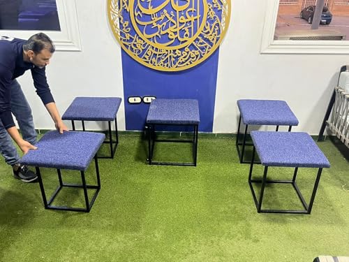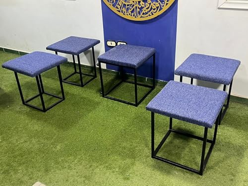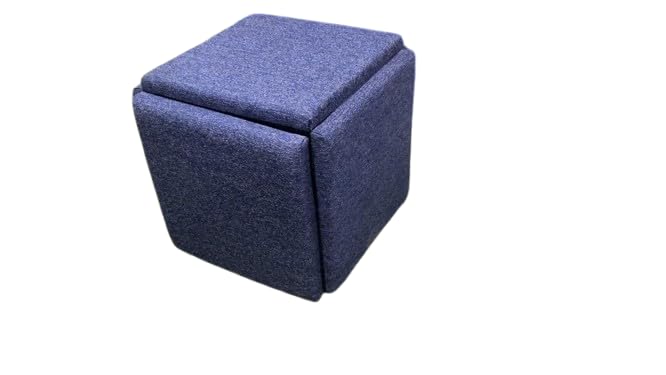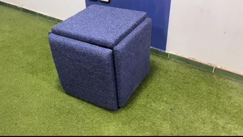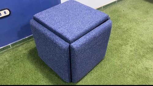 Generic - 5-in-1 Convertible Ottoman Storage Cube with 4 Folding Stools | Navy Blue Fabric Upholstery, Metal Frame, and Hidden Storage – Space-Saving Modern Furniture