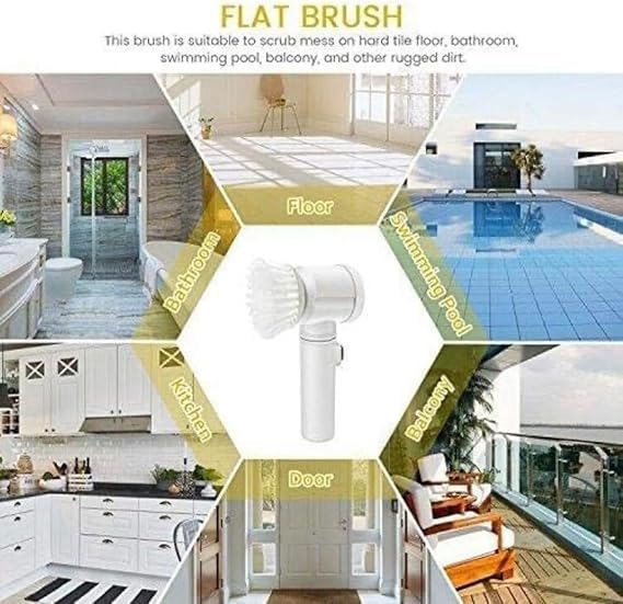 Generic - فرشاة سحرية كهربائية 5 في 1، لتنظيف حوض الاستحمام والبلاط والأرضيات والحوض والنافذة، لون أبيض