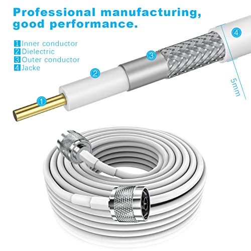 - N-Type Connector: This coax cable features an N-type connector with a threaded, weatherproof structure. The N-male connector quickly receives large amounts of data and easily handles signals. Connector Type: N-male to N-male. Cable Length: 16.4 feet(15 Meters).
