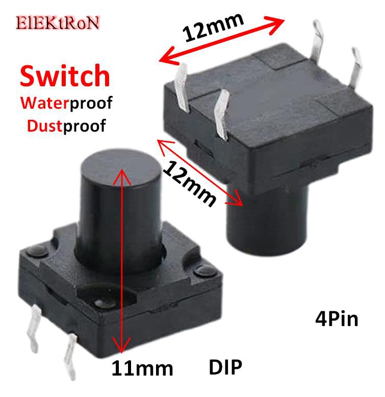 Generic - عدد 5 قطع من زر باور - Micro High performance Durable Dustproof and Waterproof Tactile Push Button Momentary Switch 4Pin (12mm x 12mm x 11mm) DIP