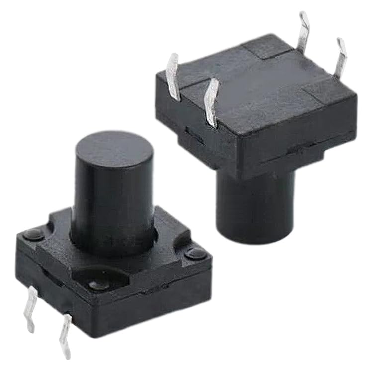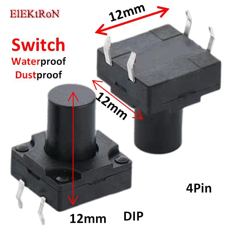 Generic - عدد 5 قطع من زر باور - Micro High performance Durable Dustproof and Waterproof Tactile Push Button Momentary Switch 4Pin (12mm x 12mm x 12mm) DIP