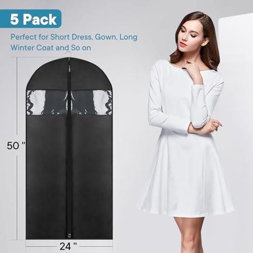 Moucas - 5 Pack - Moucas 50" Black Garment Bag, Mens Suit Bags for Closet Storage and Travel, Garment Bags for Hanging Clothes, Suit Cover Bags with Zipper for Coats, Dresses, Shirts