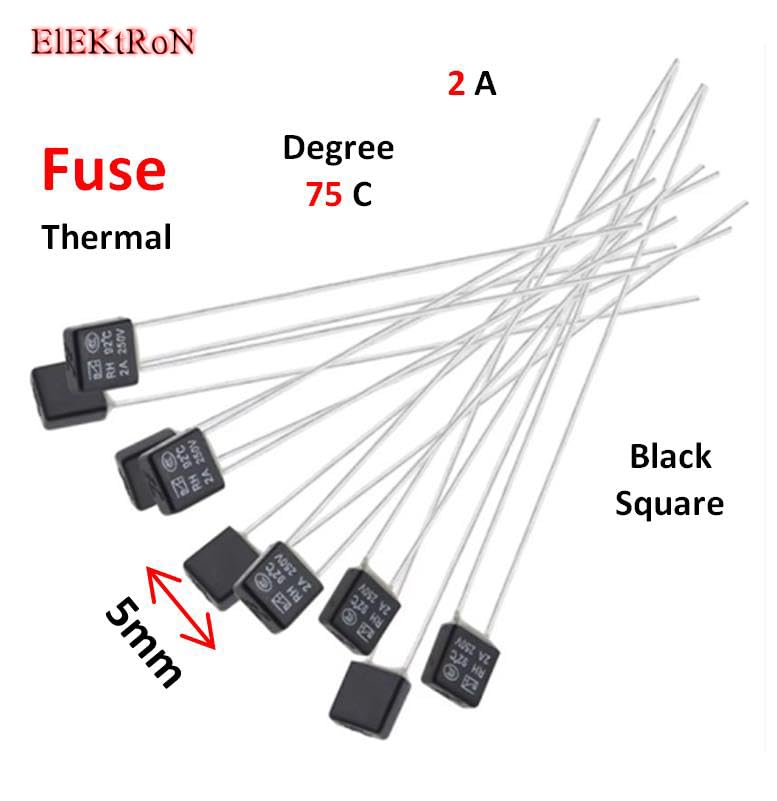 Generic - عدد 5 قطع من فيوز مروحة مربع حراري - Black Square Fan Motor LED Thermal Fuse 75C - 2A degree RH Temperature Fuse
