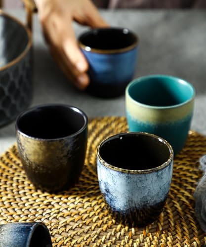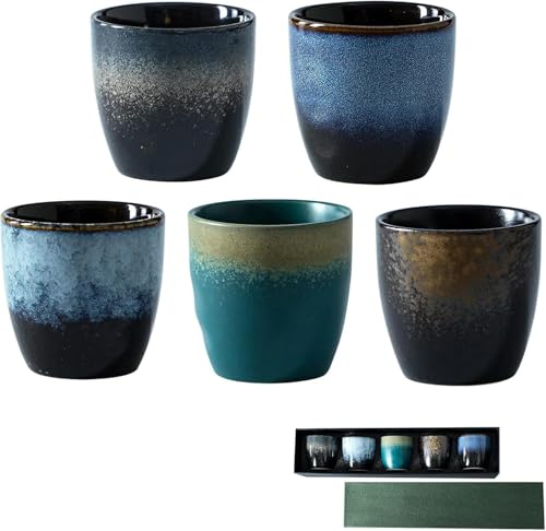 Emeralune - طقم أكواب شاي كونج فو صينية التصميم من السيراميك، فنجان للقهوة والإسبريسو للمنزل والمكتب والأماكن الخارجية، 5 قطع