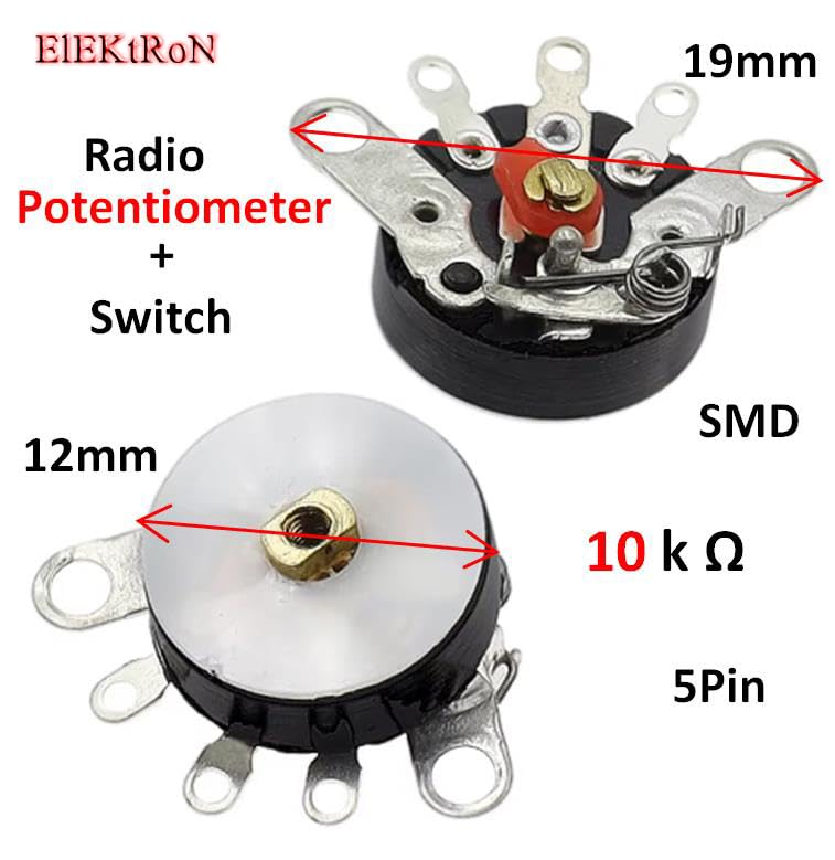Generic - 5 Pcs Headphone Volume Switch - High performance Durable Straight Angle Radio Potentiometer RV12MM B103 10K Ohm B10K Power Amplifier Volume With Switch (19mm x 12mm) SMD