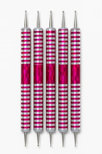 SNS SECRET NAILS SYSTEM - مجموعة أدوات تنقيط الأظافر من 5 قطع - أقلام طلاء أظافر مزدوجة الأطراف للرسم وتصميمات الأظافر التي تصنعها بنفسك - أقلام تنقيط معدنية وأكريليك - إكسسوارات مانيكير لفن الأظافر للصالونات والمنزل