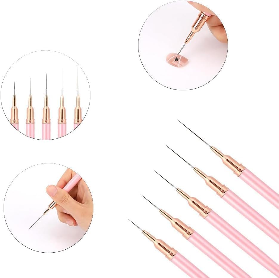 - نصائح دقيقة ودقيقة: تم تصميم رؤوس الفرشاة الرفيعة للعمل التفصيلي مثل الخطوط الرفيعة والخطوط العريضة وتفاصيل الأزهار والمنحنيات ولمسات الأطراف الفرنسية وغيرها من تصميمات فن الأظافر الصغيرة التي تحتاج إلى التحكم والدقة.