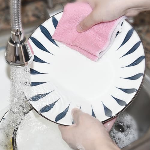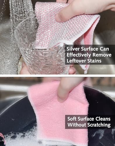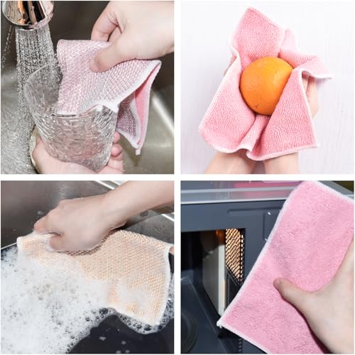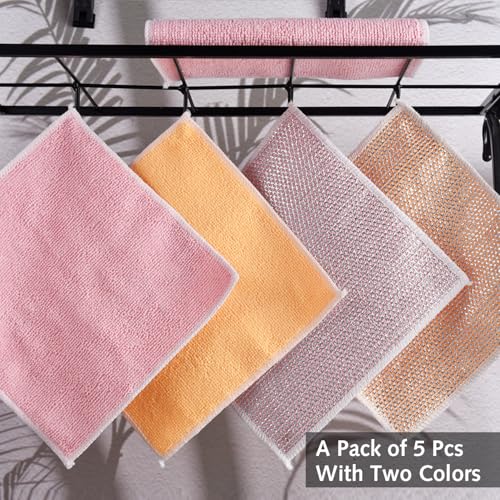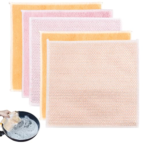 Luxiremi - قطعة قماش سلكية متعددة الاستخدامات لتنظيف الأطباق غير قابلة للخدش للاستخدام الجاف والمبلل بطبقتين قابلة لإعادة الاستخدام مع قطعة قماش من المايكروفايبر لتنظيف المطبخ والأواني والموقد، 5 قطع