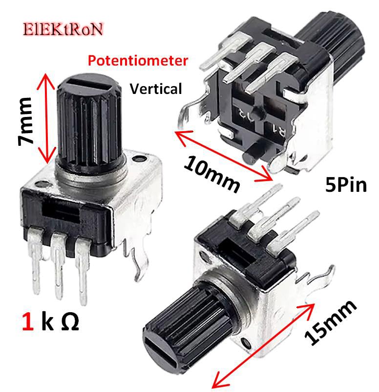 - 5 قطع من أزرار الصوت المقاومة المتغيرة لمكبر الصوت ومكبر الصوت راديو 5 قطع مفتاح صوت قصير مكبر صوت 1K - أداء عالي متين 1K اوم عمودي 15 ملم مقياس جهد راديو مقاوم قابل للتعديل RV09 مضخم طاقة 0932 عمود 3 دبابيس (15 ملم × 10 ملم) DIP