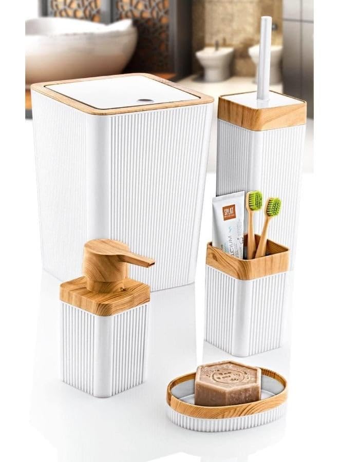 generic - 5 Piece Bathroom Accessories Set Acrylic 6 Liter Basket - Liquid Soap Dispenser - Soap Holder - Toilet Cleaning Brush - Toothbrush & Toothpaste Holder