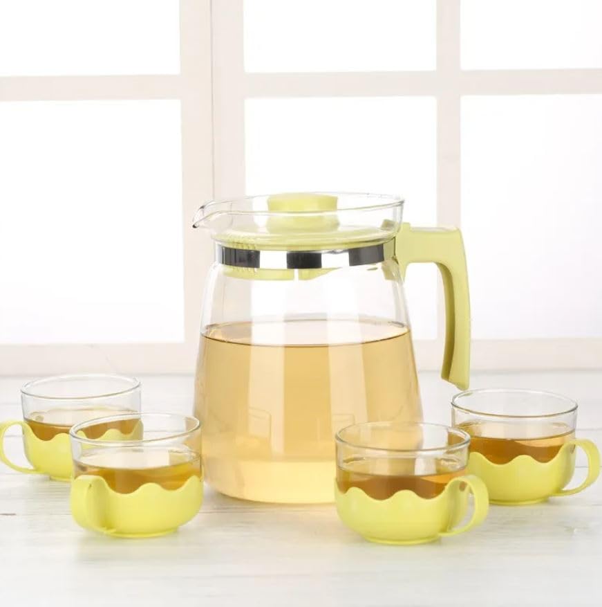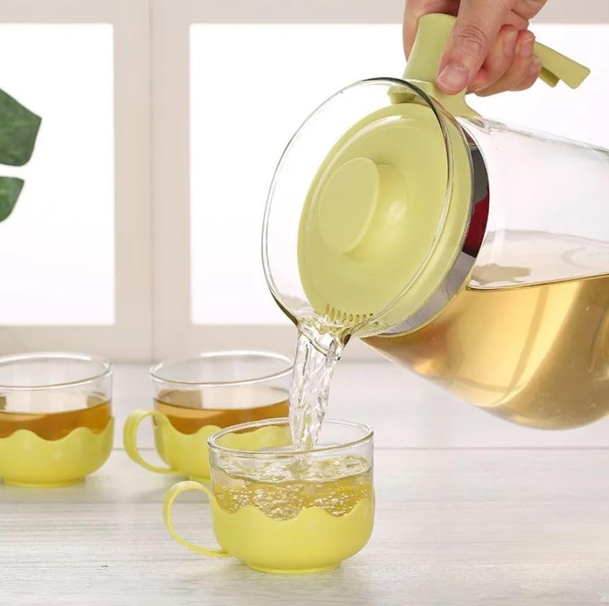 - COMPLETE SET: 2-litre glass pitcher with 4 matching cups, perfect for serving water, juice, iced tea, and other beverages in style