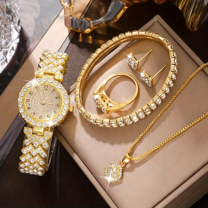 FRIDAYIN - 5 Piece Luxury Women's Jewelry Set with Rhinestone Decoration