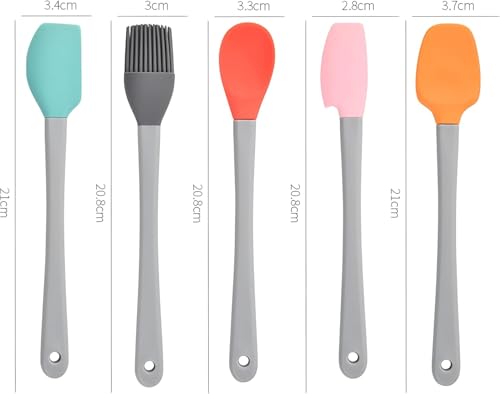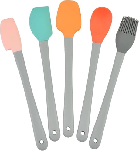 - VERSATILE SET: Collection of 5 silicone spatulas in vibrant colours perfect for mixing, spreading, and scraping in various cooking tasks