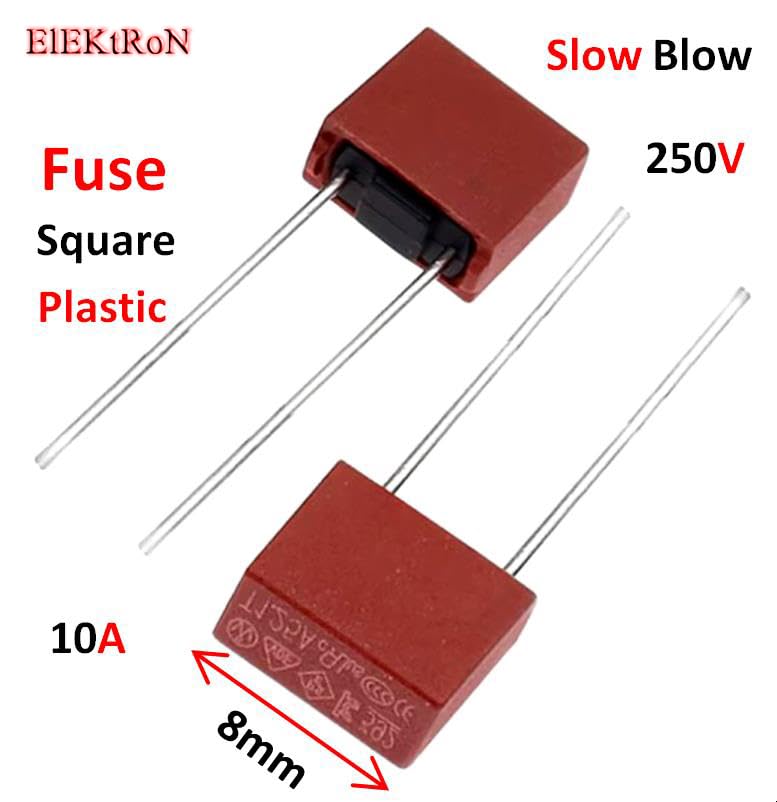 - عدد 5 قطع من فيوز 10 امبير مربع - Square Fuse Slow Blow 10A Plastic 250V For T10A LCD TV Power Board