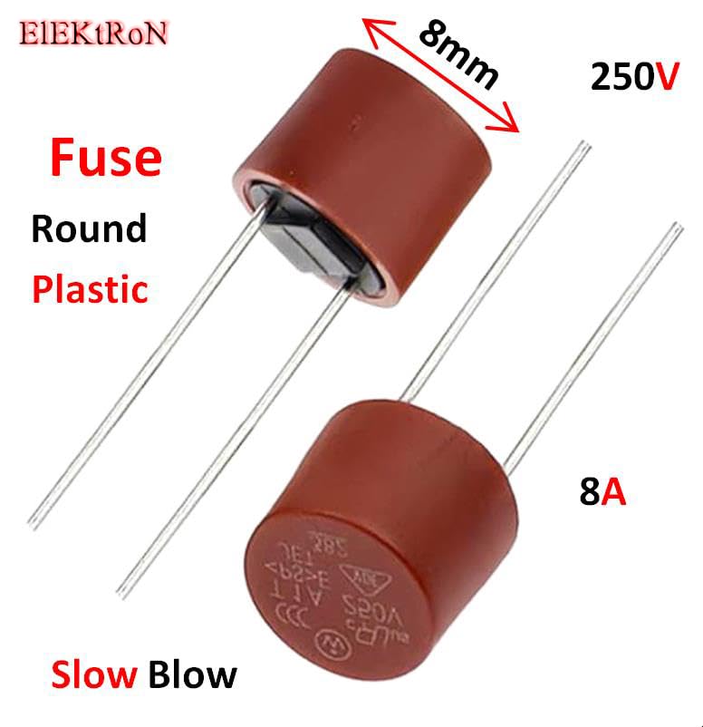 - Fuse 8A Cylindrical - Round Fuse Slow Blow 8A Plastic 250V For T8A LCD TV Power Board