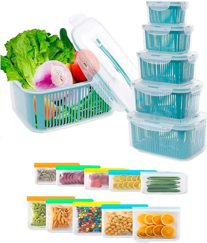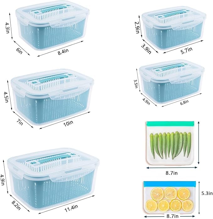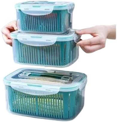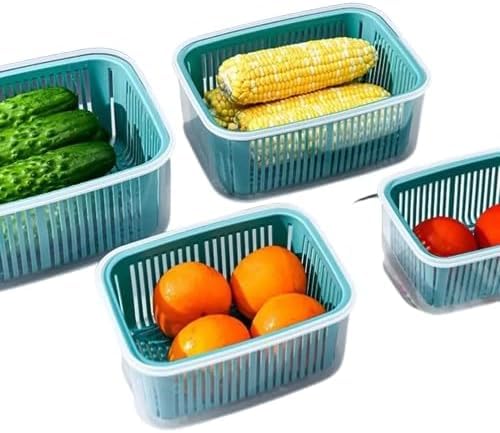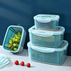 - Built in strainer to drain vegetables and fruits and keep fresh.