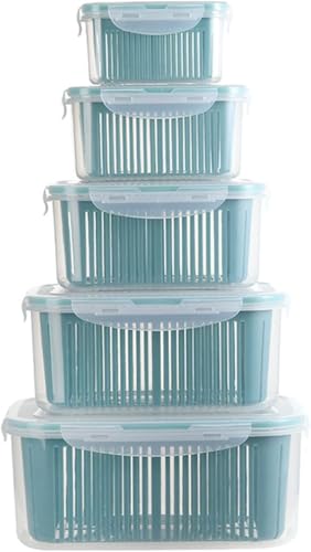 Generic - 5 Pieces Food Storage Container Set with Built-in Strainer Practical Fruit Vegetable Storage Container T