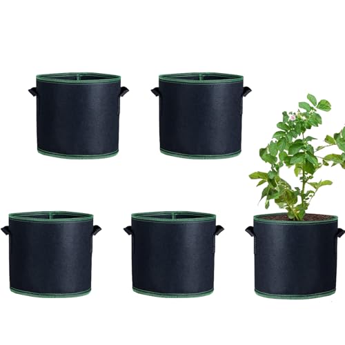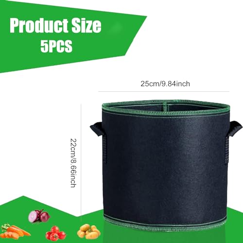 Rkllejs - 5 Pieces Non-Woven Fabric Plant Bags, Fabric Plant Pots, 10L Grow Pots, Plant Bag, Grow Bags with Handles, for Vegetal/Flower/Plant/Fruits