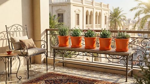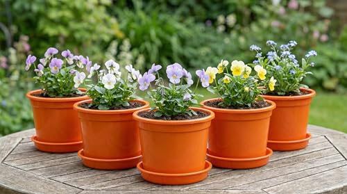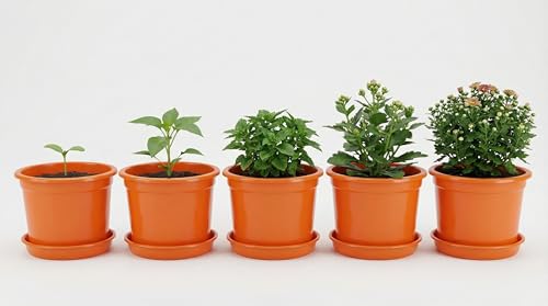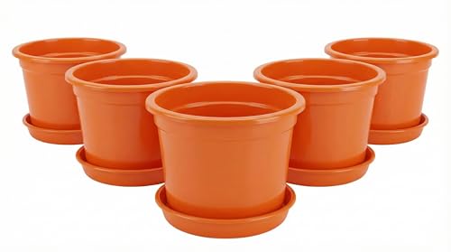 Generic - 5 Pieces Round Plastic Planter Pots 15cm Diameter with Water Collection Dish (Orange)