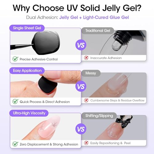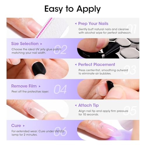 - Upgraded UV Curing: BQAN nail adhesive tabs uses advanced UV curing technology that requires only 1-3 minutes of curing under UV light to improve the adhesion and durability of the jelly gel, providing you with an easy and long-lasting press-on manicure experience