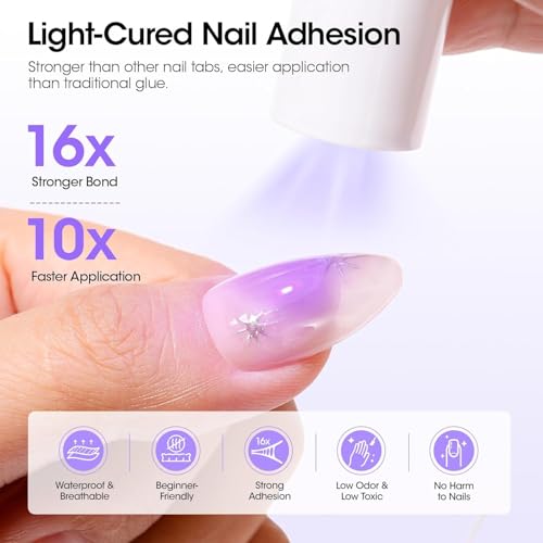 - High Adhesion and Long-Lasting Hold: After UV curing, the nail stickers for press ons can be 16 times more adhesive, allowing the nail tips to stick firmly to the nails, and not easy to come off even after 7 days, providing a long-lasting manicure effect. A perfect tool/gift for nail art lovers!