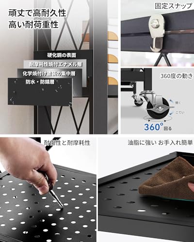 - 【Multi-functional Design】This folding rack is multi-layered design, suitable for various occasions such as kitchen, bathroom, office and so on, convenient to store sundries books, cookware and so on, saving space. Simple design with 360° swivel casters and protective fences on both sides, making it easy to move items while in place, and prevent them from falling from the side. Simple appearance design makes it suitable for any room in the office, bathroom, kitchen, living room or study