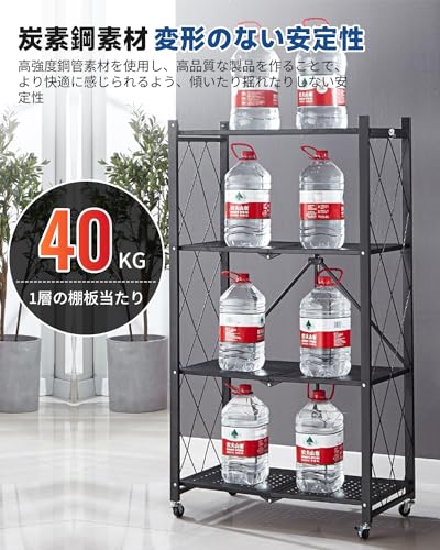 AEEZO - 5 Tier Folding Steel Rack (Easy to Use) Width 28.0 x Depth 13.4 x Height 61.0 inches (71 x 34 x 155 cm), Storage Rack, Steel Shelf, Metal Rack with Wheels, Foldable, Open Rack, Kitchen Rack, Shelf