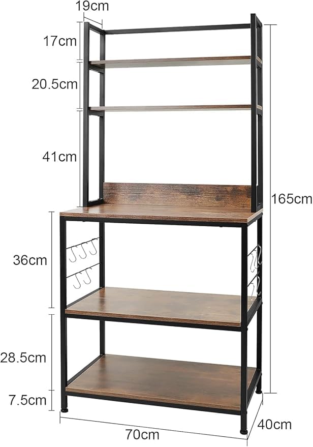- VERSATILE DESIGN: 5-tier kitchen baker's rack combines storage and style, perfect for kitchen organisation with multiple shelves for appliances, cookware, and decorative items