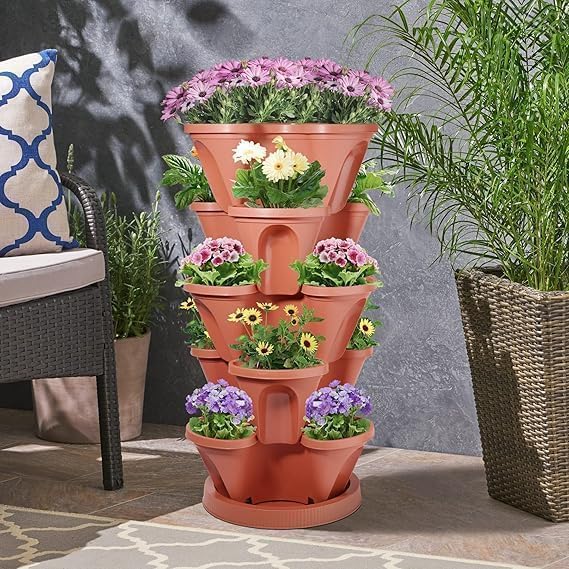 - 5 tiers for planting flowers, herbs, and small plants