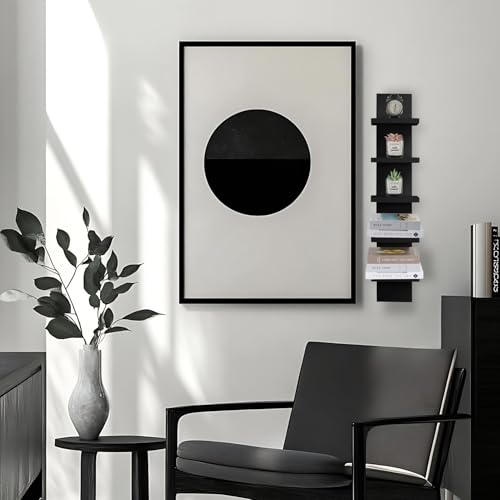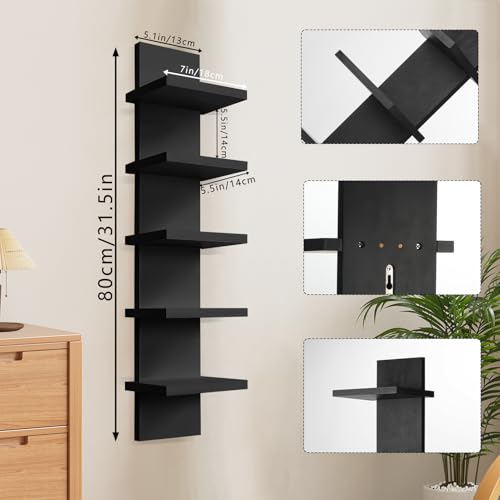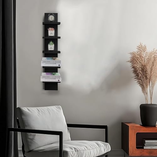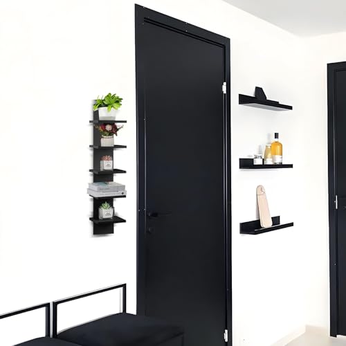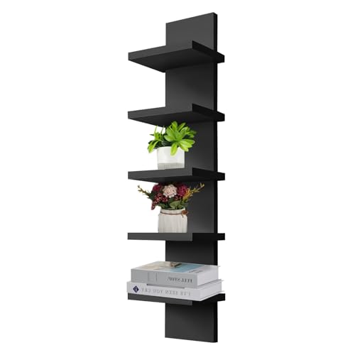 Hlimior - وحدة رفوف حائط من 5 طبقات - لمسة نهائية رقيقة ناعمة ضيقة - عمود عمودي لديكور الحائط، منظم ديكور منزلي، رف طويل متعدد الاستخدامات لغرف النوم وغرف المعيشة (اسود)