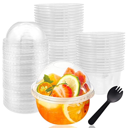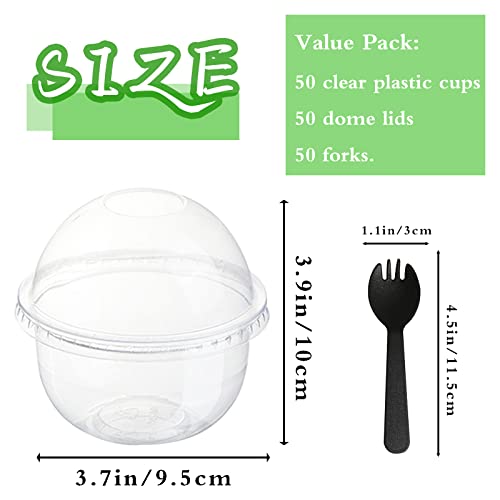 - 🍨 Value Pack:You'll get 50 clear plastic cups,50 dome lids and 50 individually wrapped forks for an 8oz/250ml cup capacity.The base diameter of the cup is:3.7 in/9.5 cm,the height is:2.2 in/5.5 cm,and the overall height is:3.9 in/10 cm.