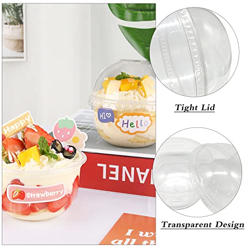 - 🍨 Clever Design:The dome lid and full clear design are great,the dome lid is high enough to place decorations on top of the dessert,helps keep the dessert intact,and also provides plenty of room for creative work.The clear cup body makes your desserts look beautiful,tasteful and professional.