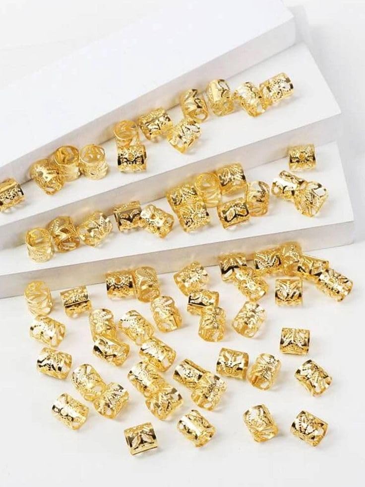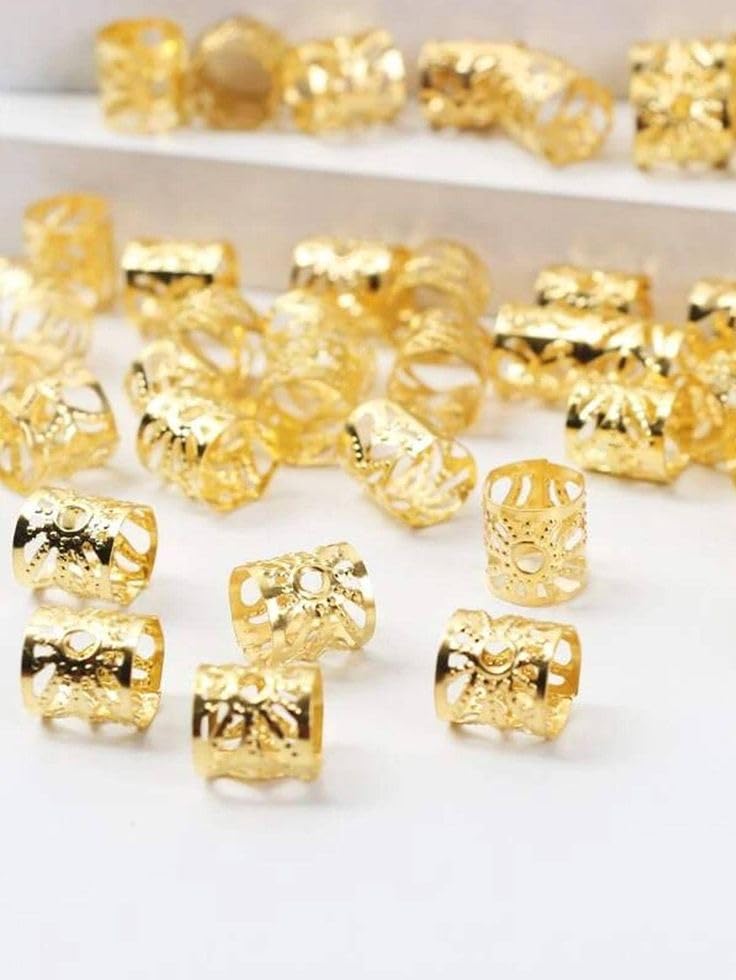 Generic - 50-Pack Decorative Hair rings, Gold-Tone Filigree Design, Metal Hair Cuffs for Braids and Dreadlocks