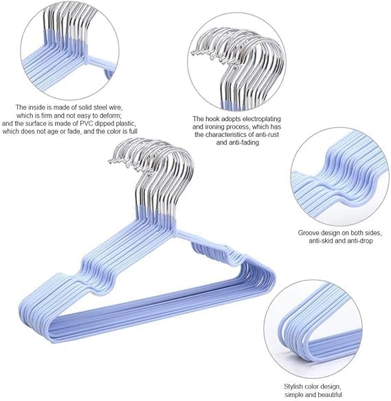 - أخدود مضاد للانزلاق - الشماعات الموفرة للمساحة قوية ومتينة، لا تصدأ ولن تنكسر بسهولة بسبب الملابس الثقيلة. تصميم أخدود على شكل حرف V الخاص على كلا الجانبين يمكن أن يمنع الملابس من السقوط وهو مفيد لتعليق الفساتين والملابس الداخلية والملابس ذات الأشرطة.