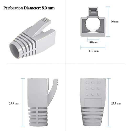JODROAD - 50 Pack RJ45 Boot Cover, Cat6A Cat7 Ethernet Network Cable Strain Relief Boot (Fit OD:6.5-8.0MM Ethernet Cable Connector) (OD:8.0MM, Grey)